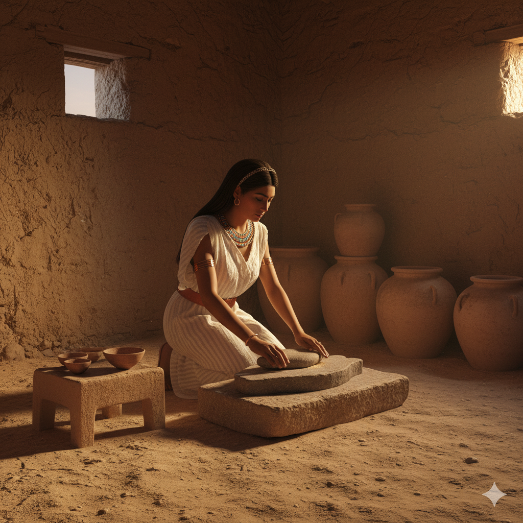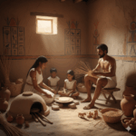 Each morning began with the rising sun — a sacred rhythm mirrored in the workday:The father might go to the fields, workshop, or temple.The mother ground grain, baked bread, and tended to the garden.Children helped, played, or learned trades from their parents.Meals were simple but nourishing: bread, beer, onions, fish, and sometimes meat or fruit for festivals.Food preparation took time, but it was also a family ritual, bringing everyone together.